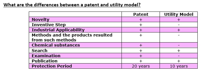 What are the differences between a patent and utility model?